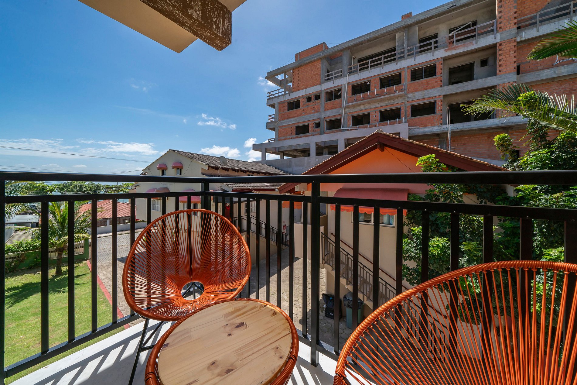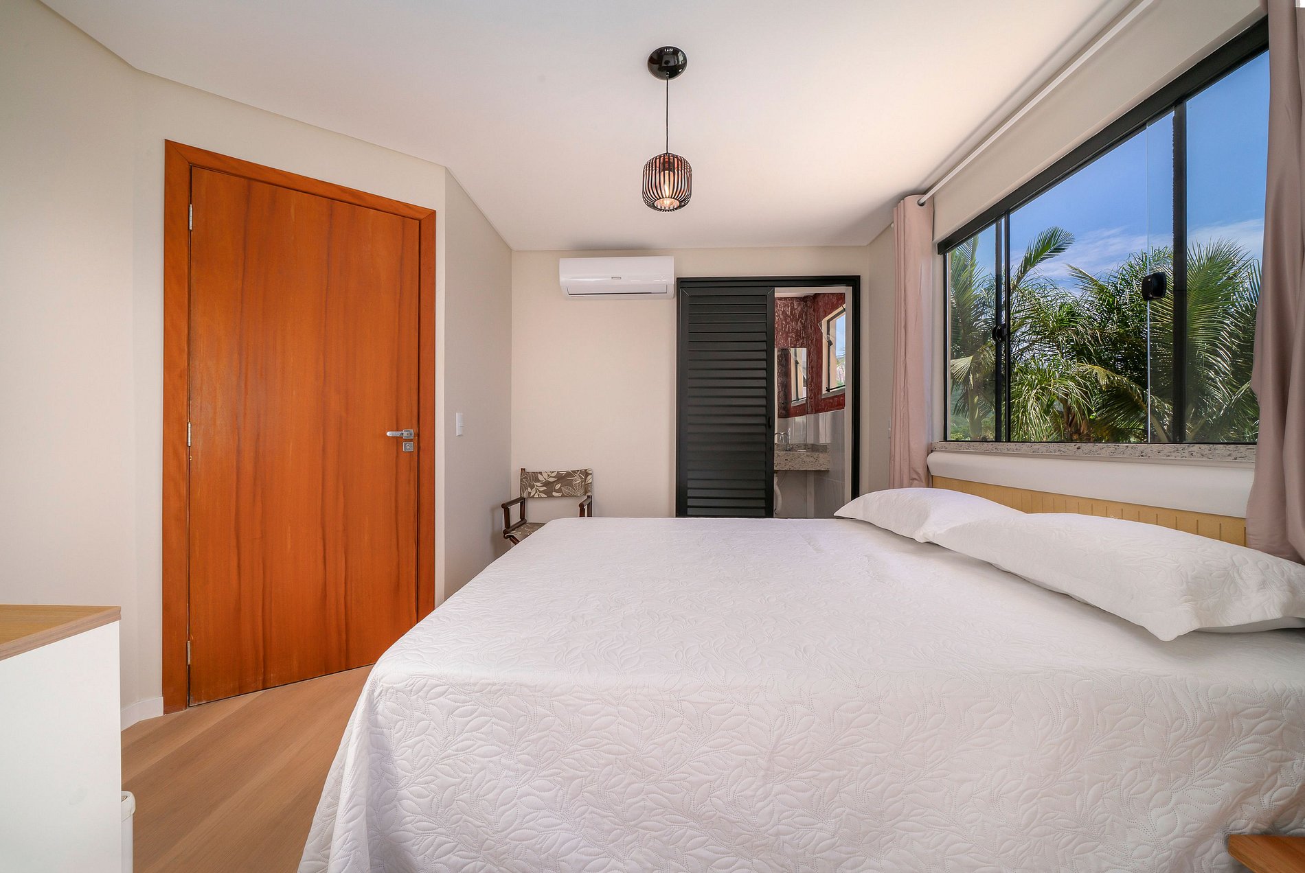 - Banheiro privativo, guarda-roupas e TV no apartamento.