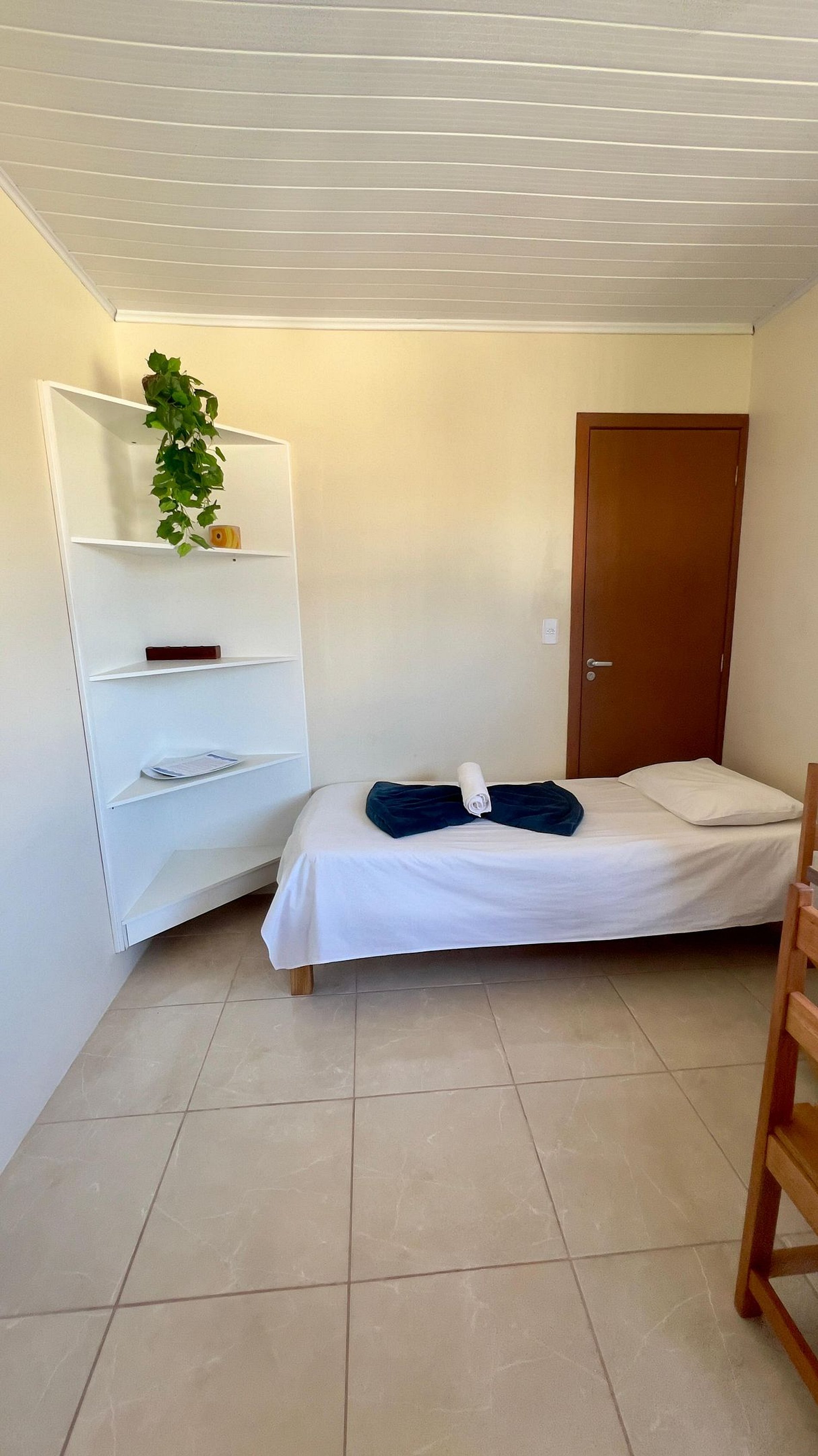 - Banheiro privativo, guarda-roupas e TV no apartamento.