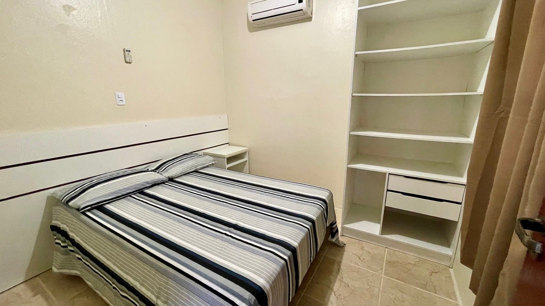 - Banheiro privativo, guarda-roupa e TV no apartamento.