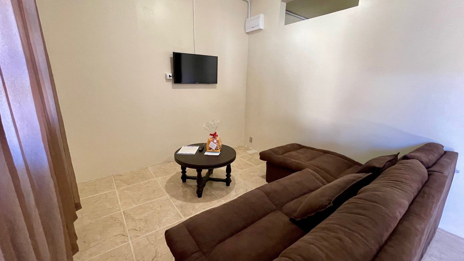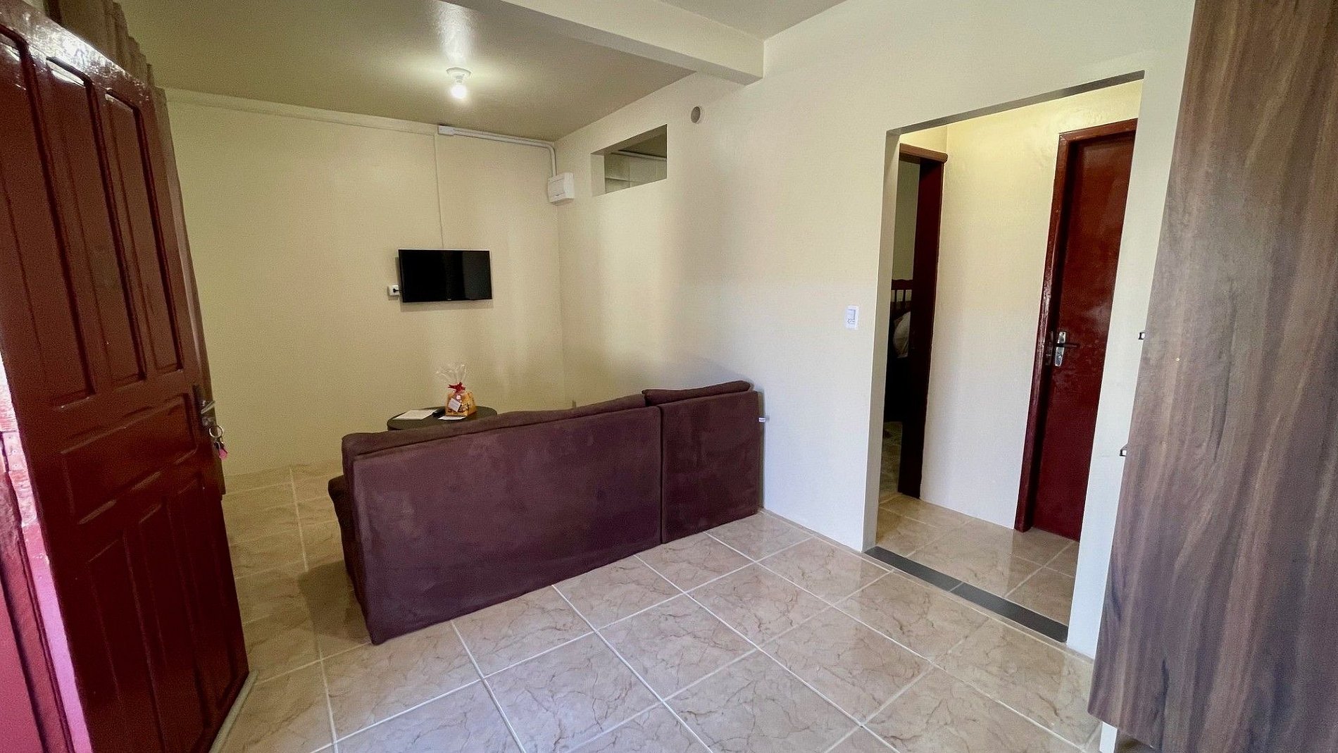 - Banheiro privativo, guarda-roupa e TV no apartamento.