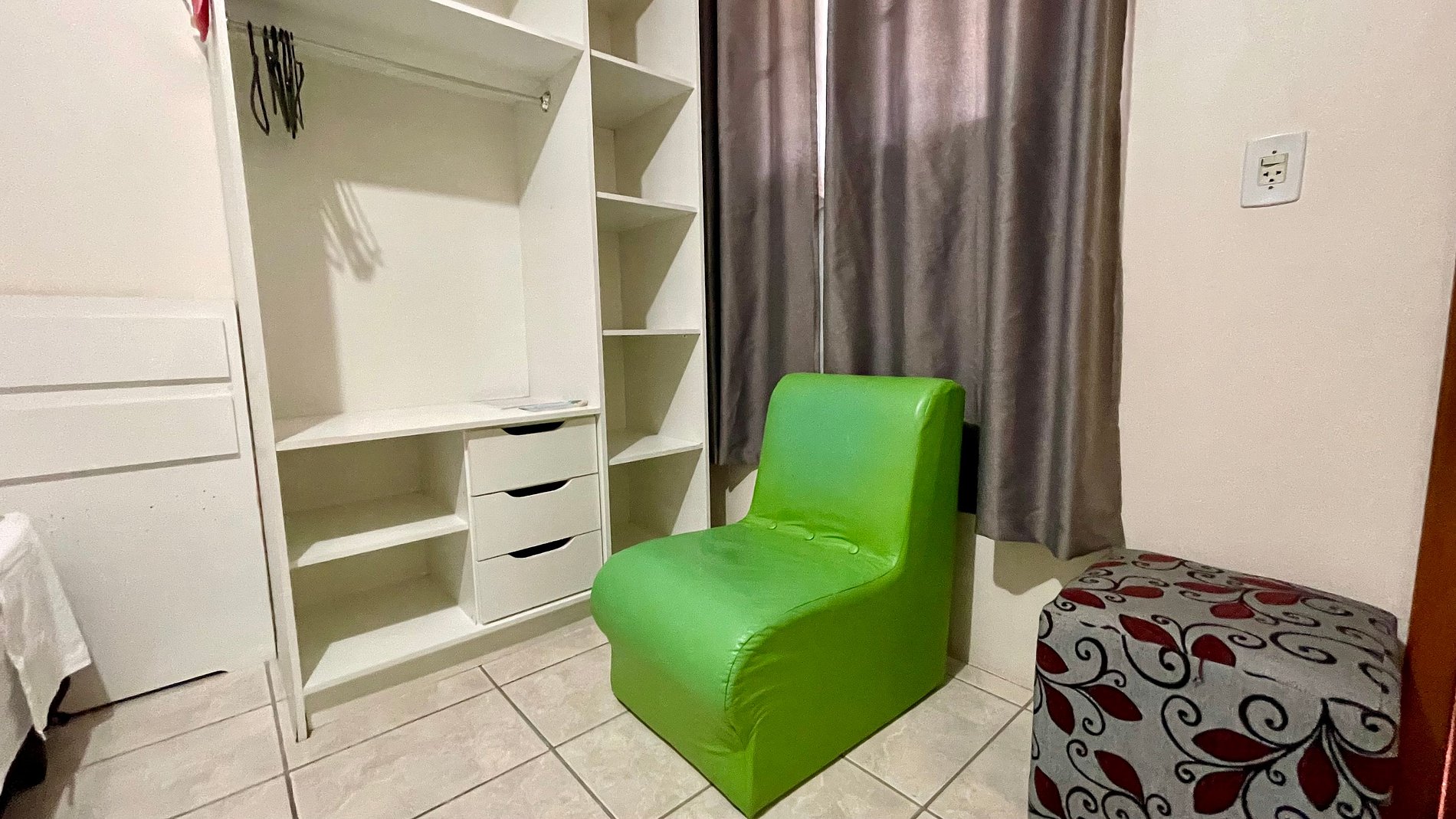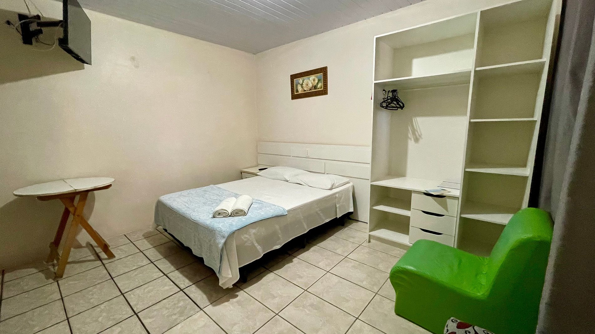 - Banheiro privativo, guarda-roupas e TV no apartamento.