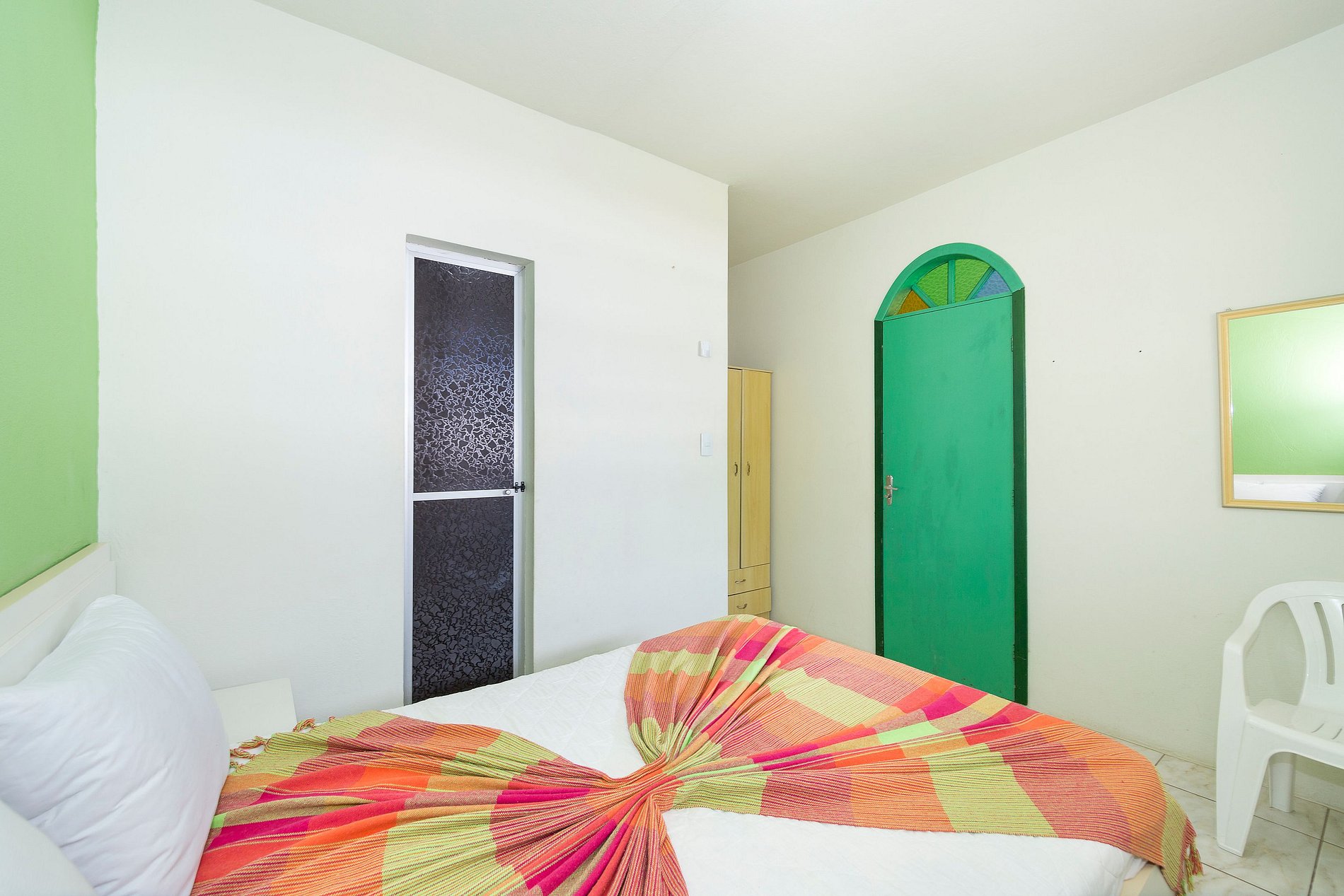 - Banheiro privativo, guarda-roupas e TV no apartamento.