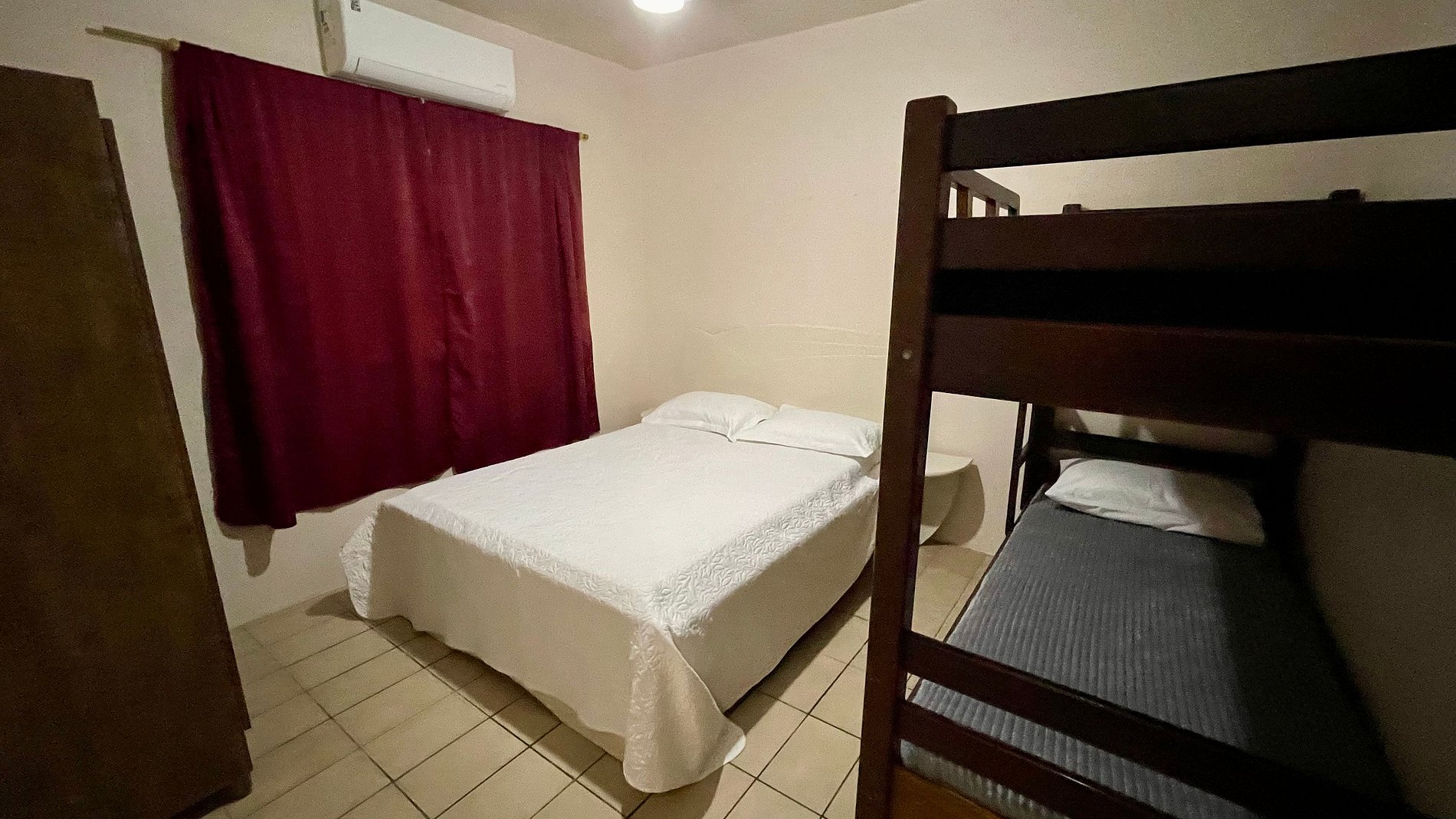 - Banheiro privativo, guarda-roupas e TV no apartamento.