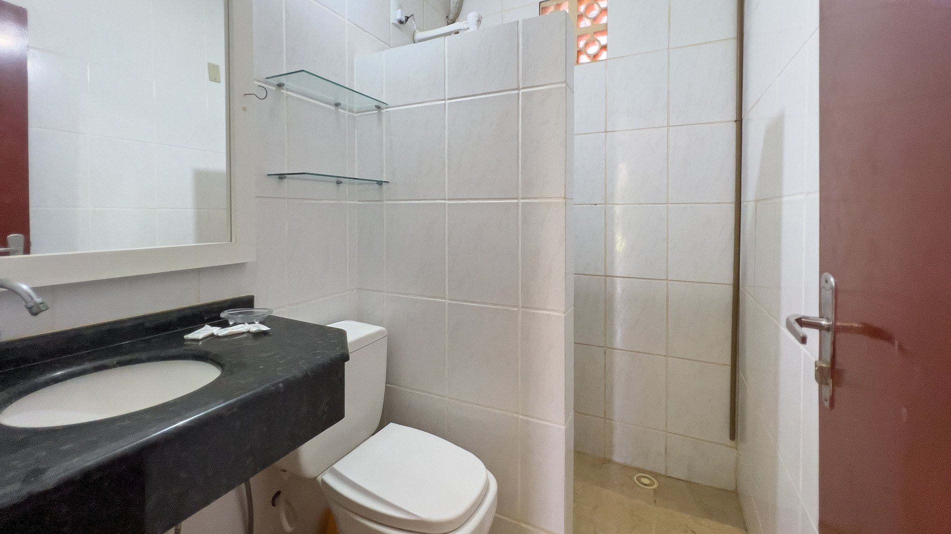 - Banheiro privativo, guarda-roupas e TV no apartamento.