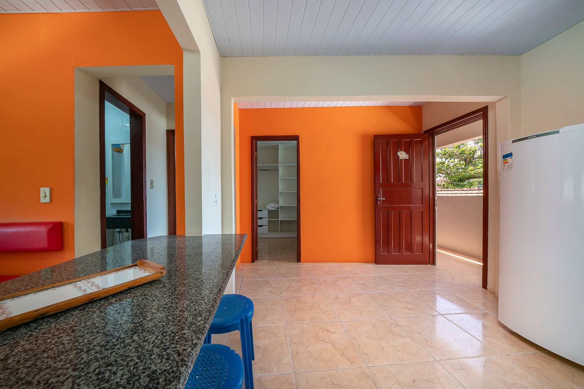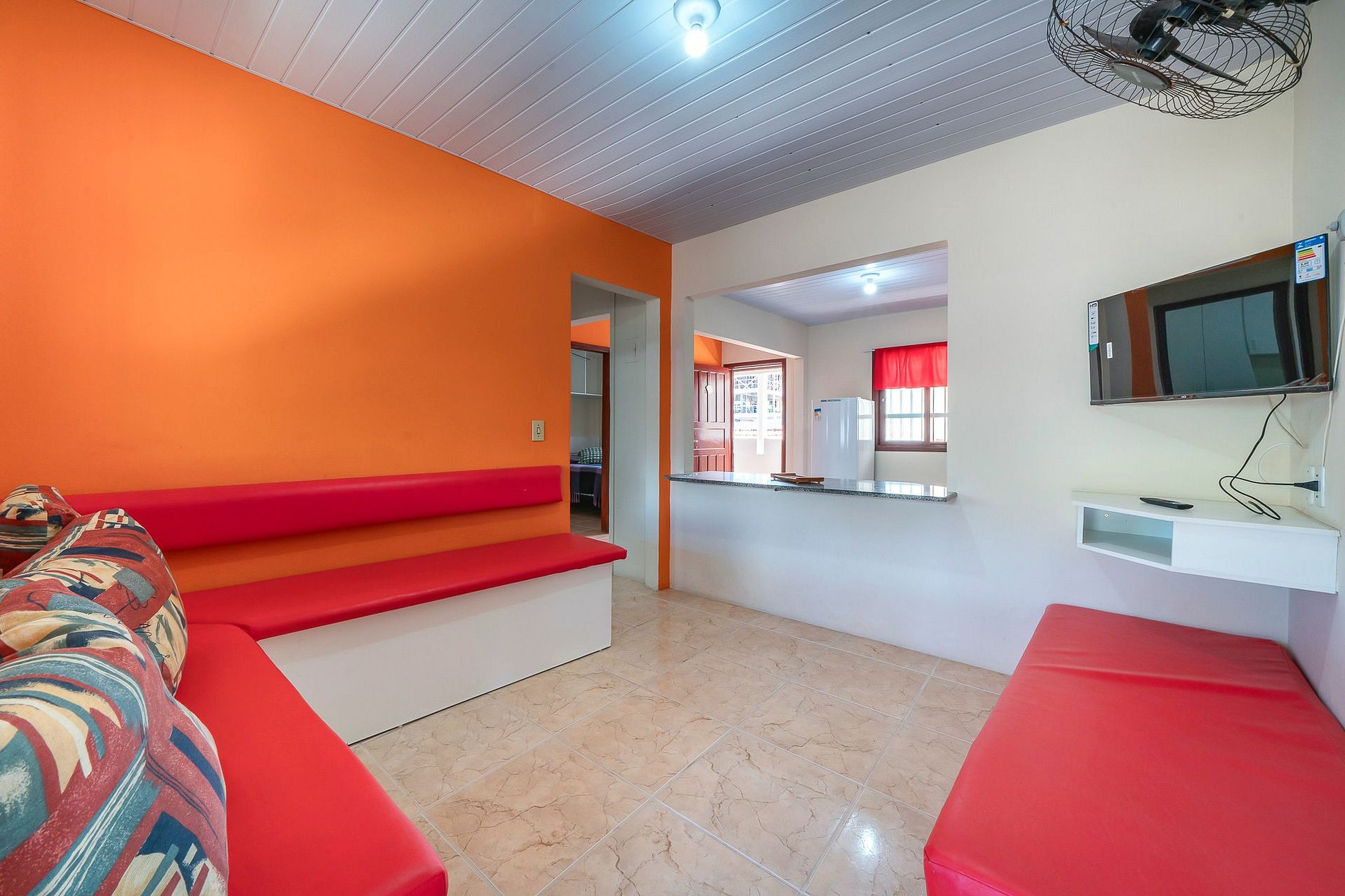 - Banheiro privativo, guarda-roupa e TV no apartamento.