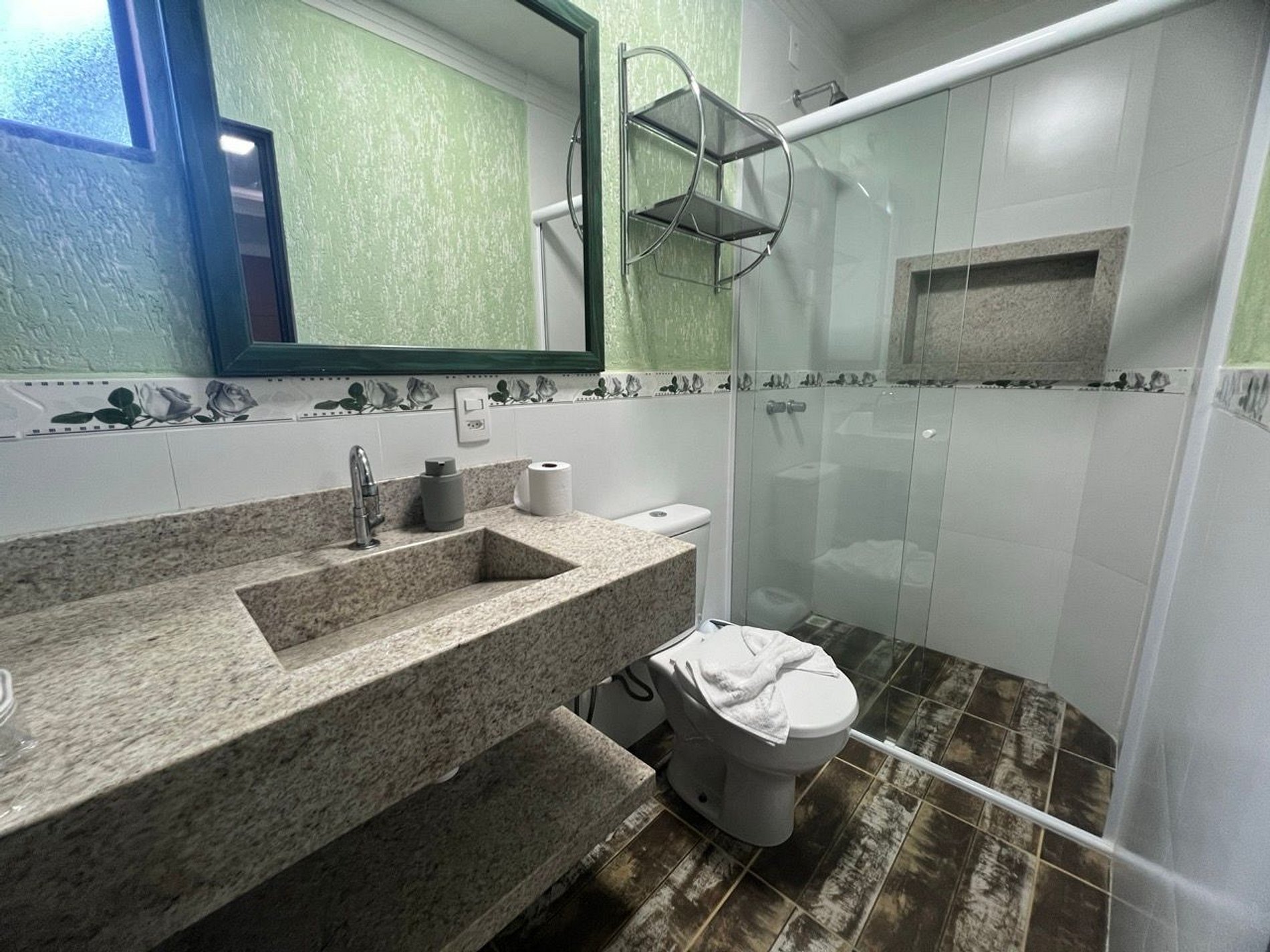 - Banheiro privativo, guarda-roupas e TV no apartamento.
