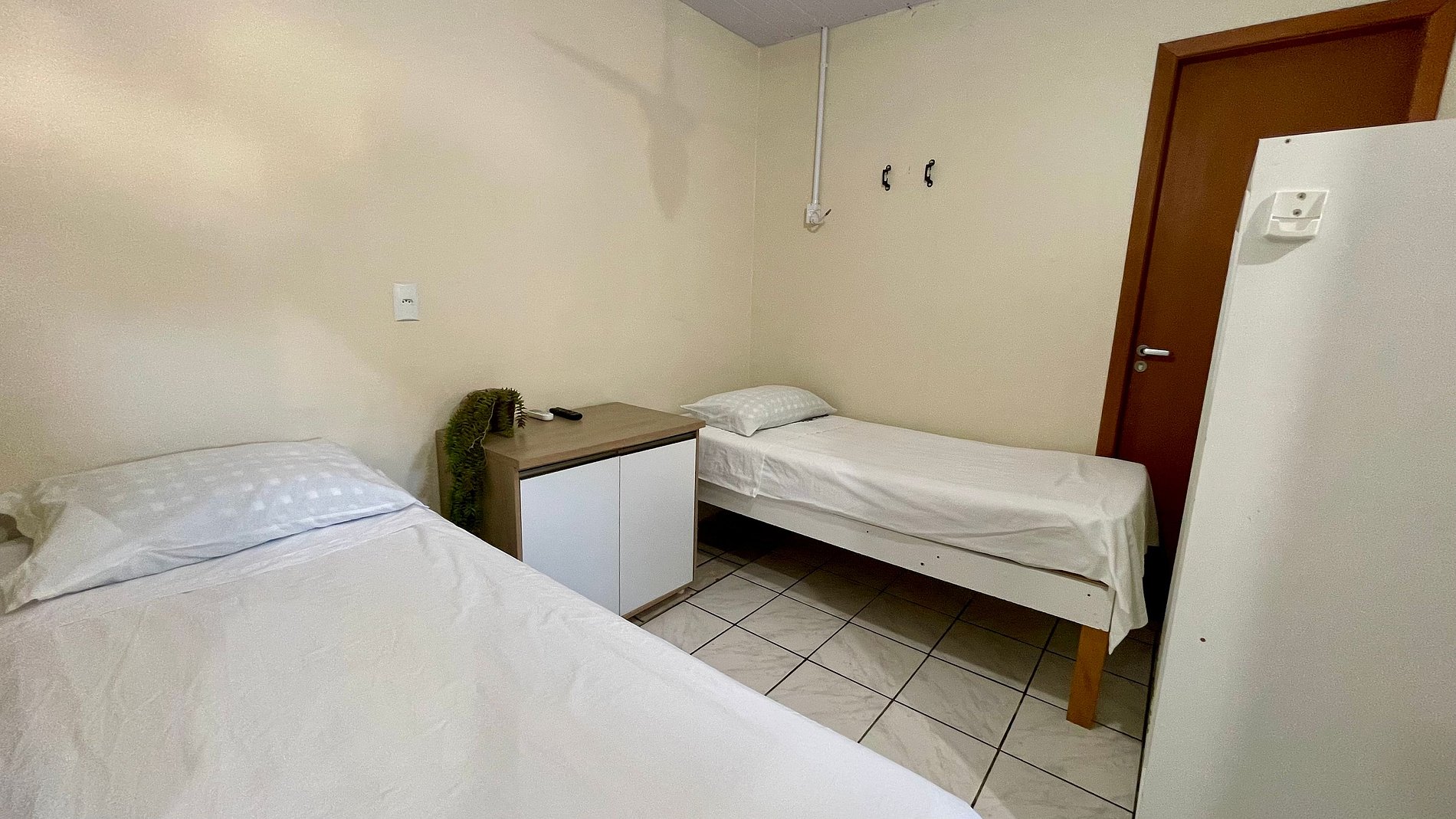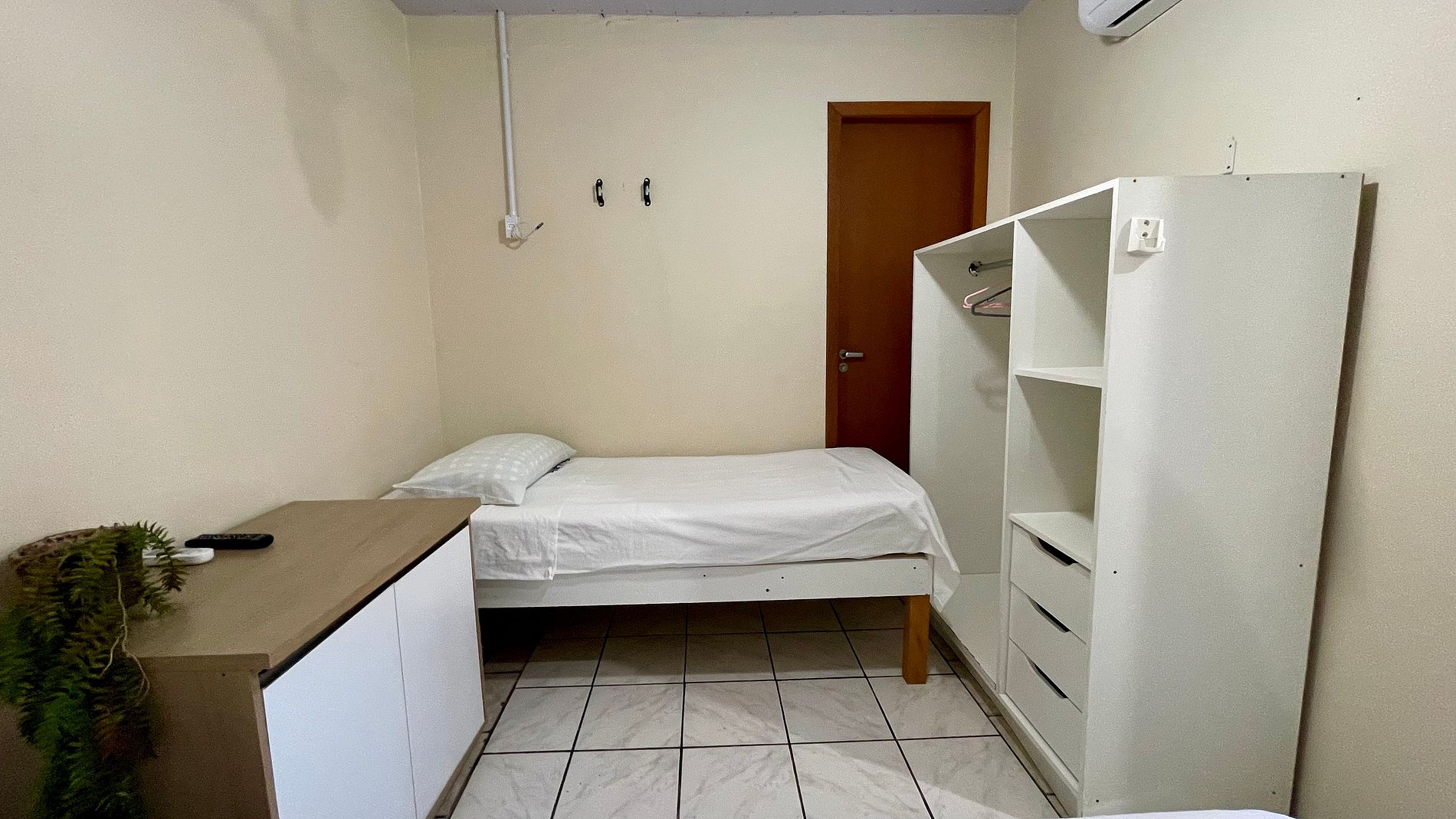 - Banheiro privativo, guarda-roupas e TV no apartamento.